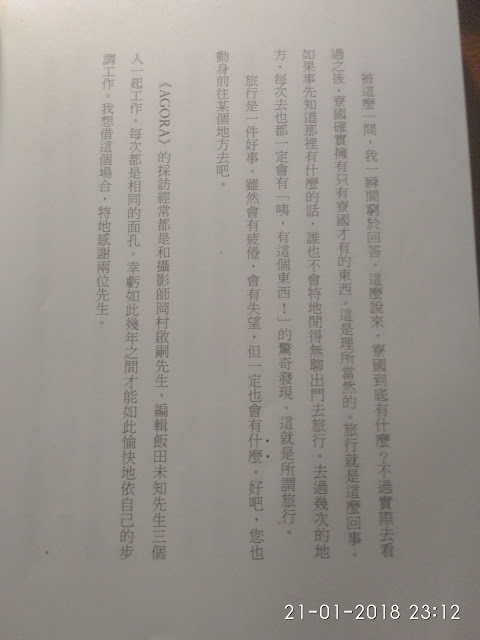 那些風景是否會對什麼有幫助嗎?我還不知道。結果或許並沒有多大用處,只不過是回憶而已也不一定。但本來,那就是所謂旅行不是嗎?那就是所謂人生不是嗎?